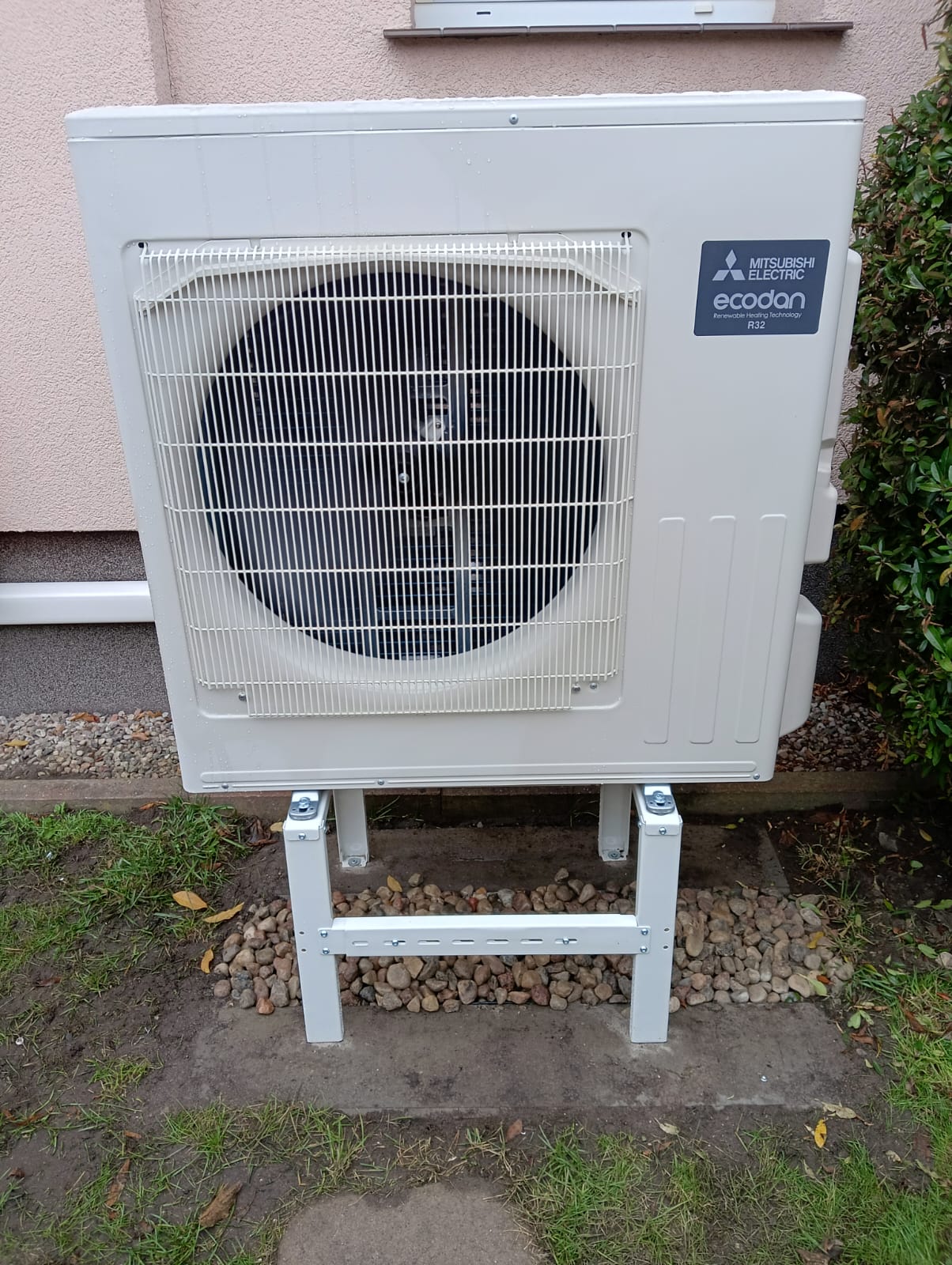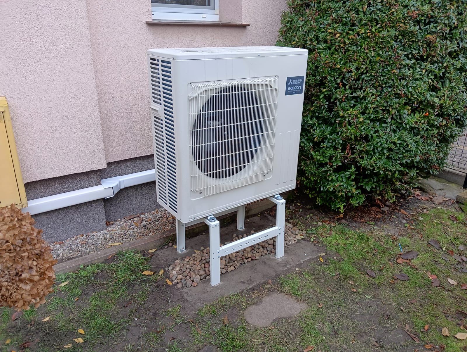 Kolejnym etapem był montaż jednostki zewnętrznej i wewnętrznej pompy ciepła Mitsubishi. Zespół Ekover wykonał: